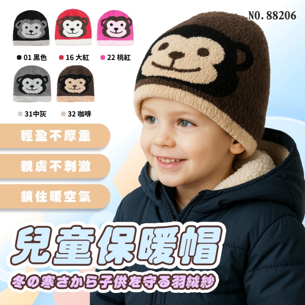 兒童羽絨紗帽-88206-保暖帽-猴子