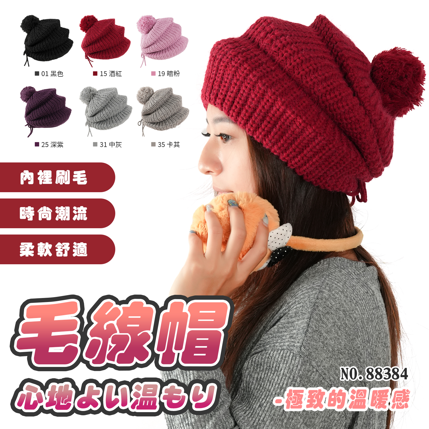 成人毛線帽- 88384 MIT刷毛毛線帽