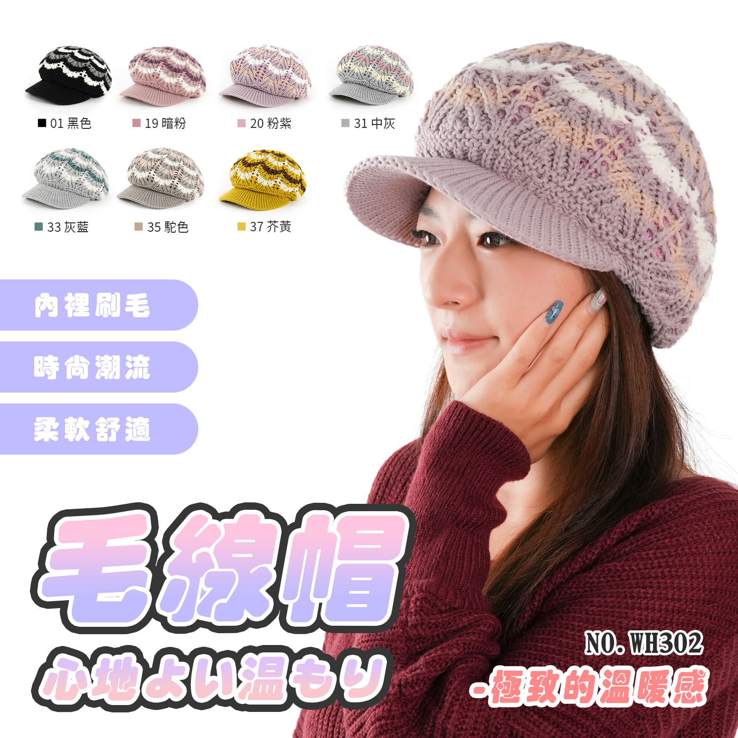 成人毛線帽- WH302 MIT刷毛毛線帽