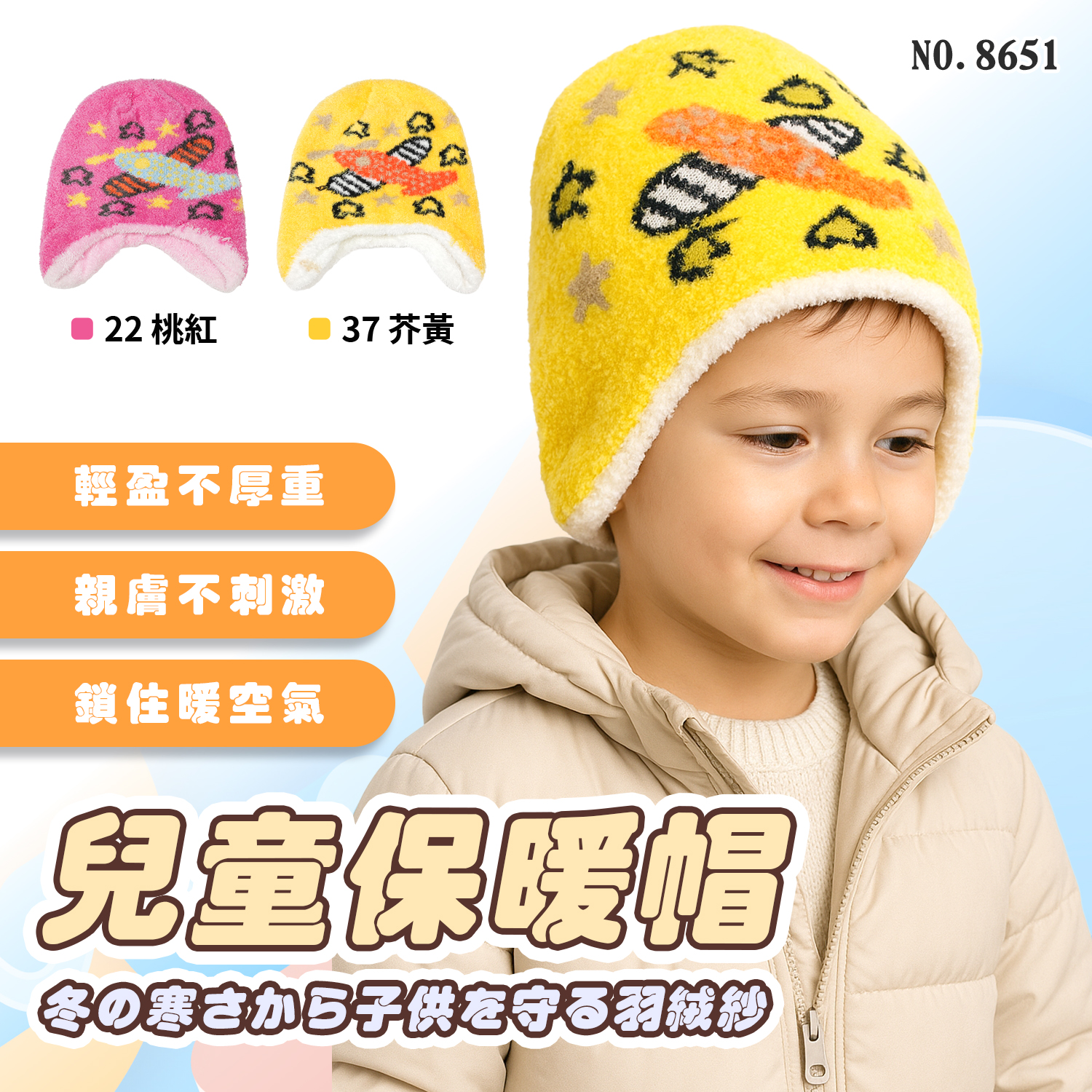 兒童羽絨紗帽-8651-護耳帽-飛機