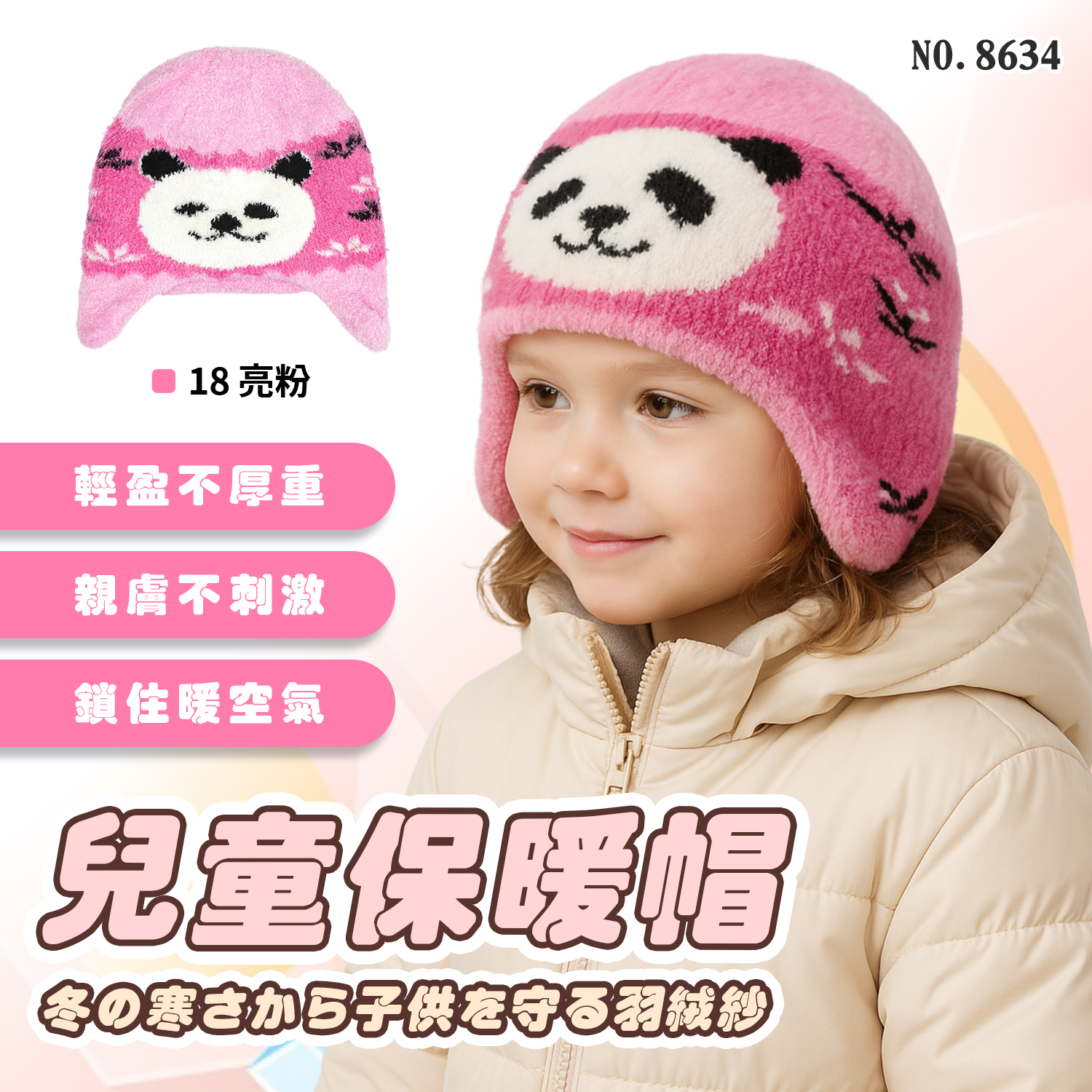 兒童羽絨紗帽-8634護耳帽-熊貓